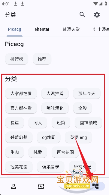 1、下载安装好这款Pica Comic聚合软件,然后来到软件首页中,如图所示。