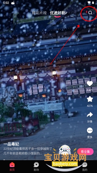 1、进入首页即可上下滑动切换视频,点击右上角搜索图标,可对短剧进行搜索;