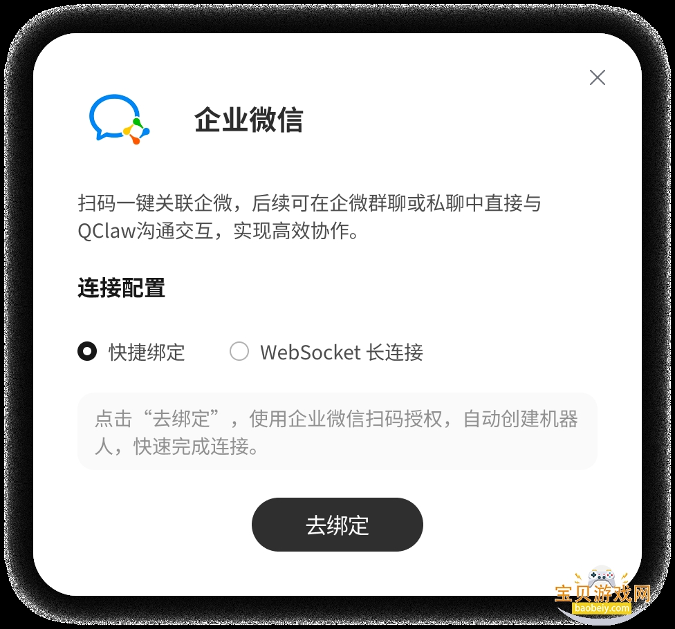 打开QClaw客户端→点击【关联微信】→用微信扫码→完成绑定。