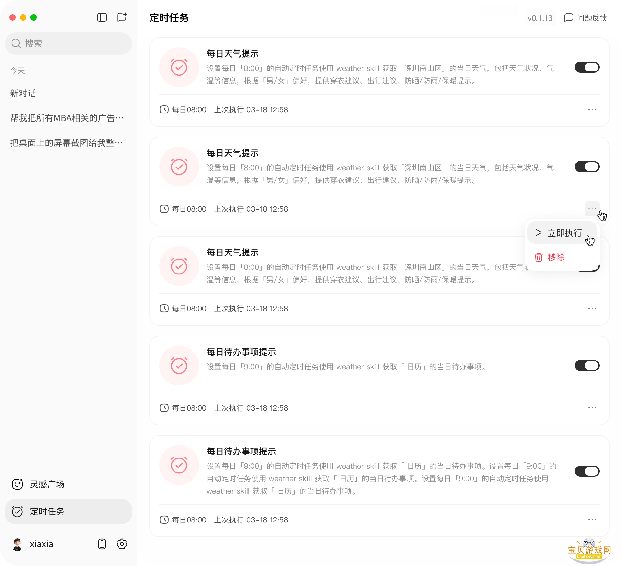 “每天想查查星座运势、看看新闻资讯、提醒股价波动,或者只是提醒您喝杯水”,现在,所有定时任务都能统一可视化操作!开关、随时调整,智能生活从此更省心。”