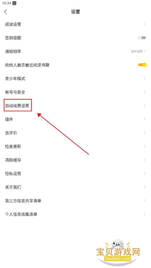 2、在“设置”中找到“自动续费设置”,进入后点取消即可。