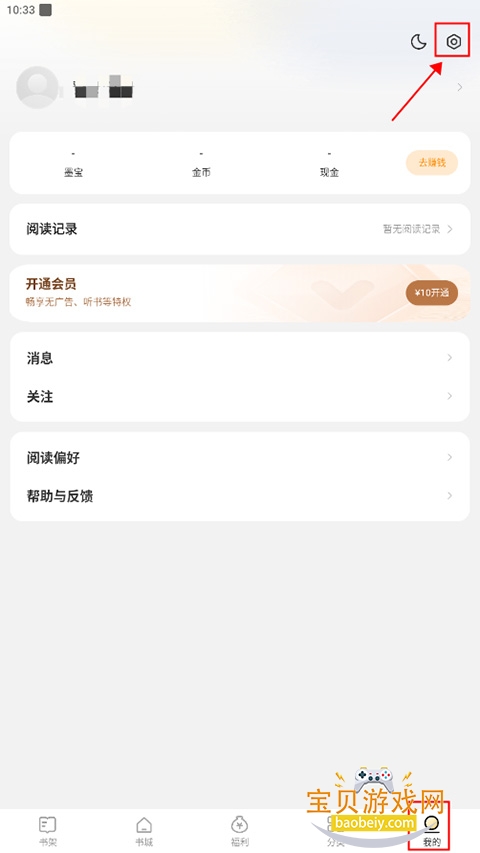 1、进入app“我的”页面,点击右上角“设置”图标;