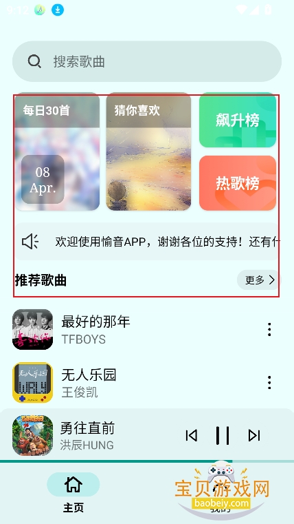 1、进入首页,可以通过榜单,或者推荐歌曲筛选喜欢的音乐