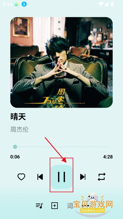 5、进入播放界面,直接点击播放,可以免费收听音乐