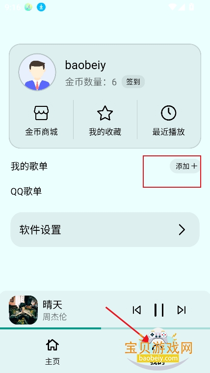 1、进入我的界面,点击【添加歌单】