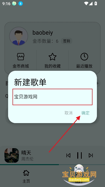 2、输入歌单名称,点击【确定】