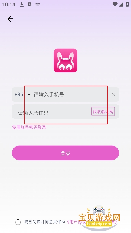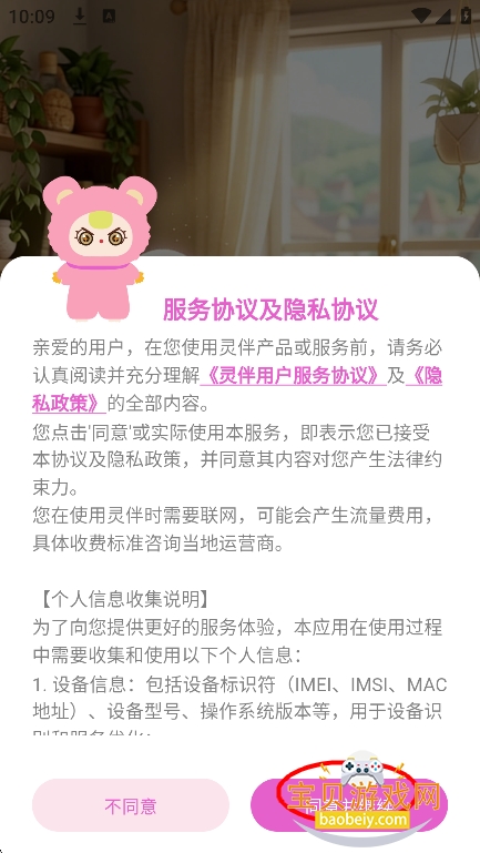 1、在宝贝游戏网下载安装灵伴linksoul安卓版,首次进入,点击【同意并继续】