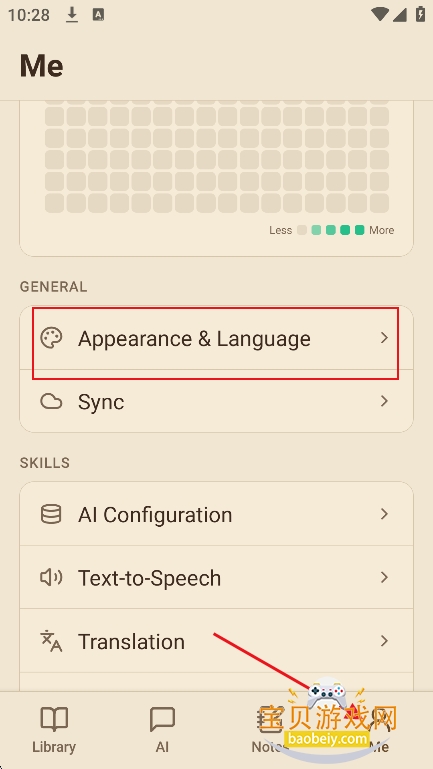 1、进入我的界面,点击【外观设置与语言】