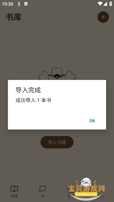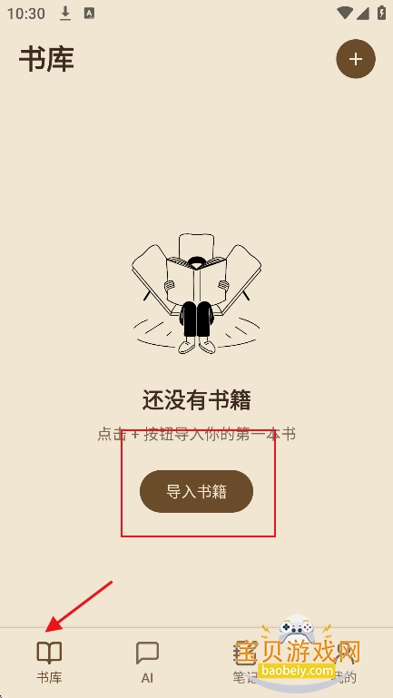 1、进入【书库】界面,点击导入书籍