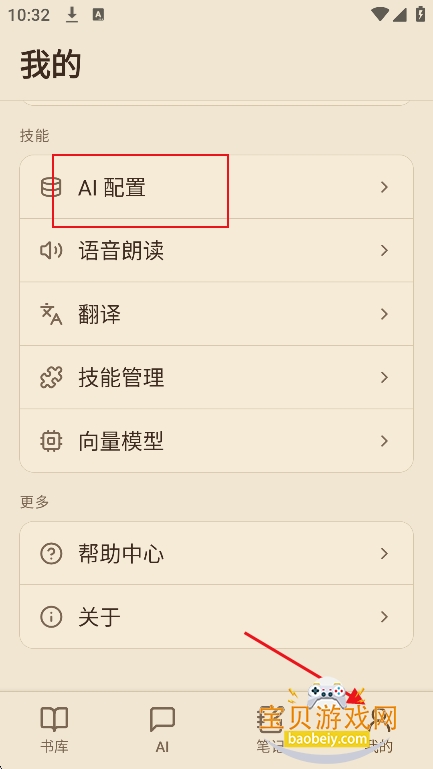 1、进入我的界面,点击【ai配置】