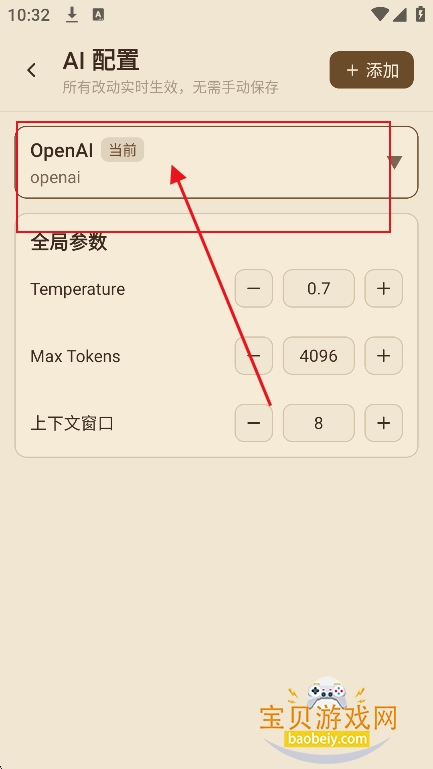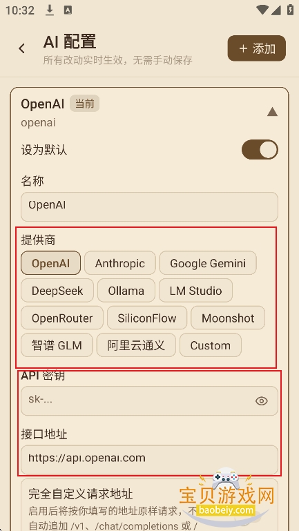 3、勾选需要的ai模型,然后配置秘钥,以及接口地址等