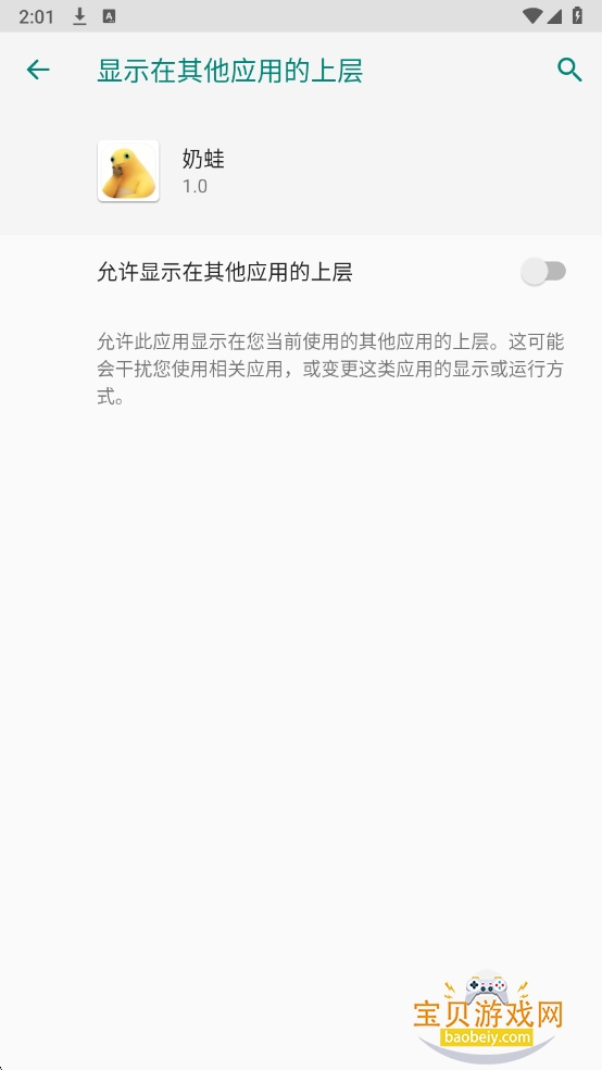 该应用需要“显示在其他应用的上层”权限,请根据引导开启保证正常运行,首次运行可能出现两个,关掉重启即可