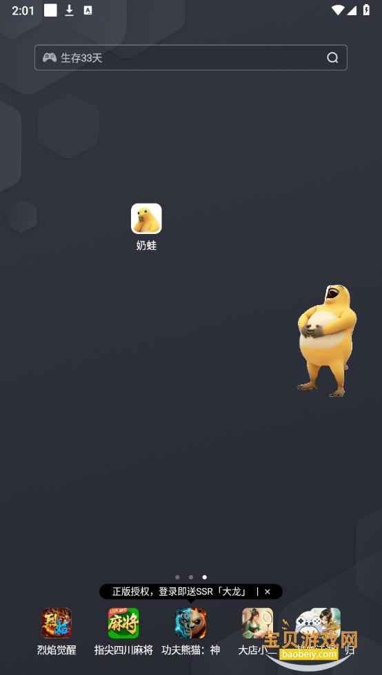 2、就可以看到奶蛙出现在桌面上,点击就会大笑。