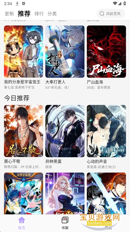 1、进入首页,可以查看推荐漫画内容,根据每个漫画板块,筛选可能喜欢的漫画
