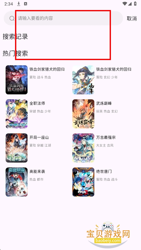 3、或者点击搜索框,输入关键词,精准检索漫画