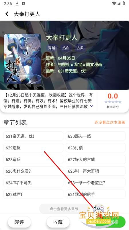 4、进入喜欢的漫画界面,点击【开始阅读】