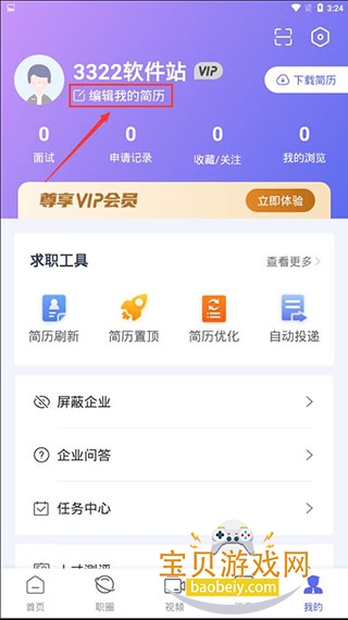 5、【我的】:这里显示的是软件的一些设置,当然也包含了个人的信息和简历相关的内容。