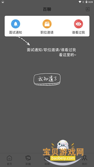 4、【消息】:这里分为面试通知、职位邀请和谁看过我三大块,你所投简历的回音也都可以在这里看到。