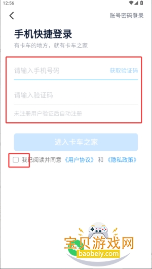 2、在登录界面输入手机号码及验证码,勾选协议后进入平台。