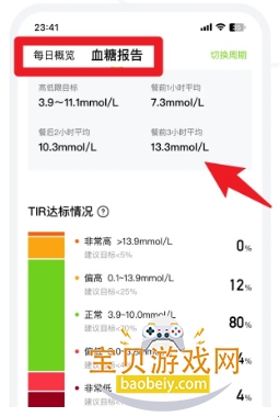 3、点击数据报告模块查看每日概览,了解达标情况与高低值分布及详细统计。