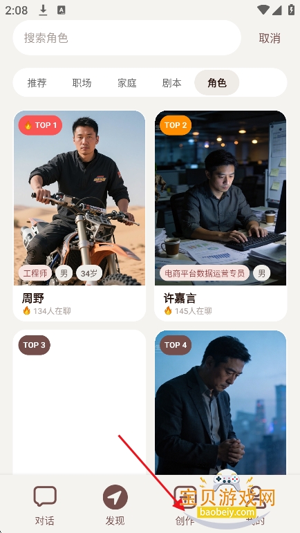 1、进入【发现】界面,可以根据关键词标签筛选角色