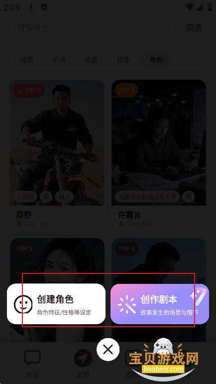 2、还可以筛选剧本,根据剧本内容,选择想要对话的角色