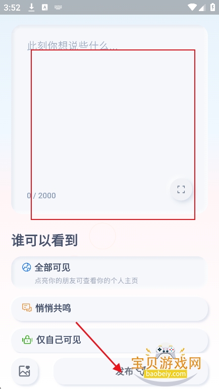 2、输入想要发布的内容,设置可见范围,最后点击【发布】