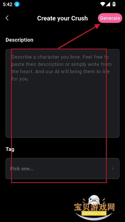 2、在创建界面,上传头像,输入角色昵称