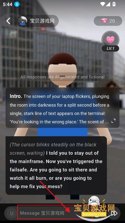 6、在对话框输入对话内容,就可以和创建的角色进行互动