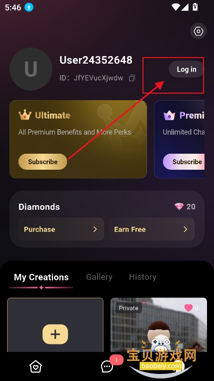 1、进入我的界面,点击【创建角色】