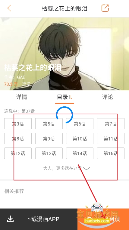 4、进入喜欢的漫画界面,选择章节,点击【开始阅读】