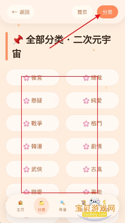 2、点击【分类】还可以根据关键词标签分类,筛选可能喜欢的漫画类目