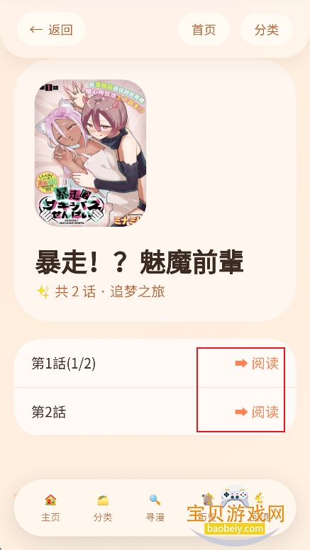 5、最后进入喜欢的漫画界面,选择章节,点击【阅读】
