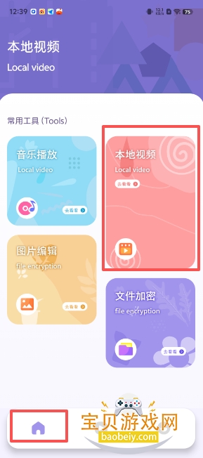 1、打开软件进入主页,找到页面上的“本地视频”。