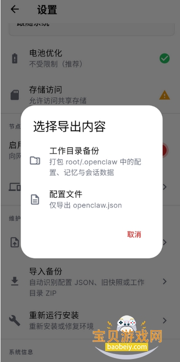 -一键安装运行环境:支持一键安装Android独立运行环境,自动部署UbuntuRootFS、Node.js、OpenClaw三大核心组件,无需手动配置,全程自动化完成。