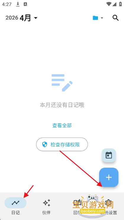 1、进入【日记】界面,点击右下角【+】