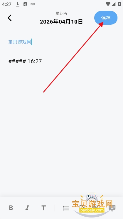 2、在文本框输入日记内容,点击【保存】