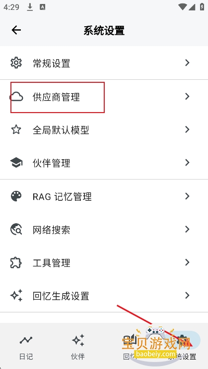 1、进入【系统设置】界面,然后点击【供应商管理】