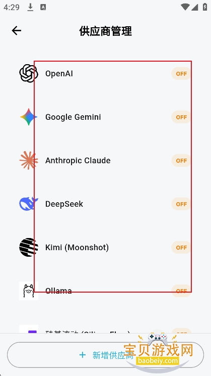 2、然后在供应商界面,选择需要开启的供应商