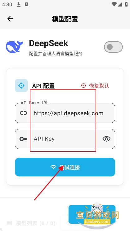 3、进入测试界面,输入key。然后点击测试