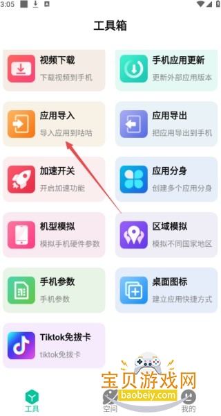 找到【导入应用】功能。