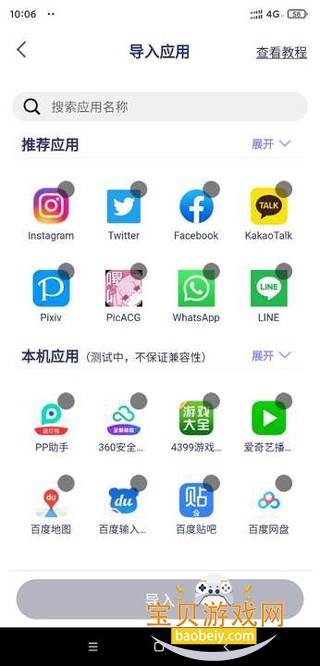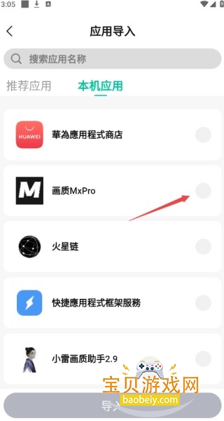 选中需要导入的应用即可完成。