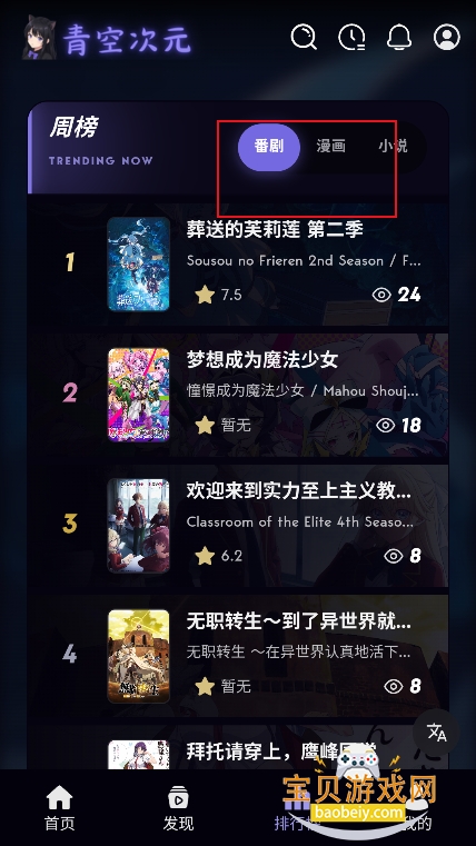 3、进入【排行榜】还可以根据热榜,查看榜单番剧,帮助大家精准筛选优质动漫内容