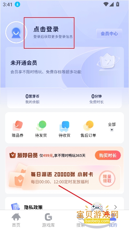 进入游戏界面,登录账号,就可以开始体验云游戏内容