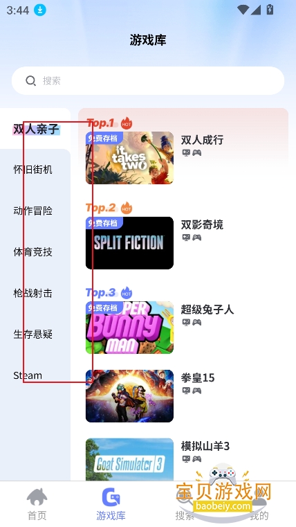 2、进入【游戏库】还可以筛选游戏分类