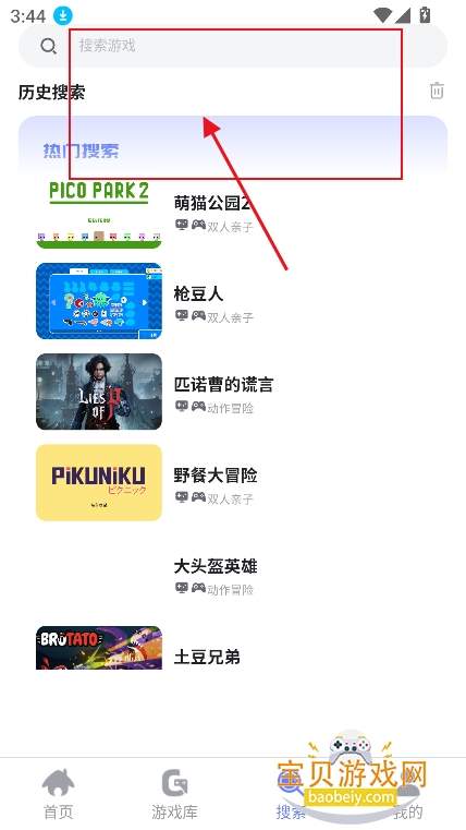 3、进入搜索界面,还可以输入关键词,精准搜索喜欢的游戏