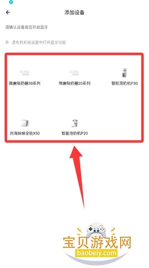 2、开启蓝牙后选择对应型号,开始设备绑定流程。