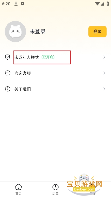 1、进入我的界面,点击【未成年模式】