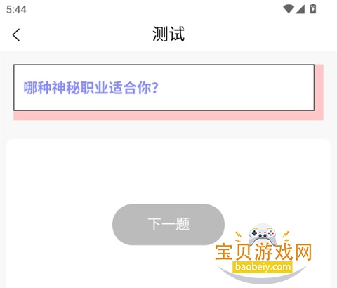 在测评列表中,选择想要参与的测试(如"哪种神秘职业适合你?"),点击进入测试页面;