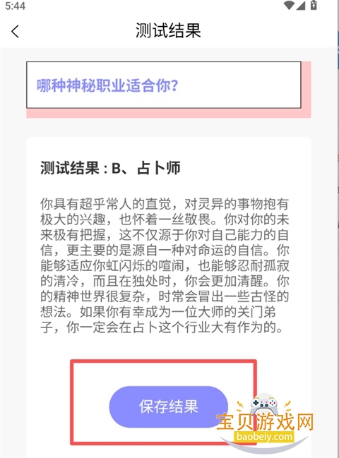 查看结果后,点击"保存结果",可完成本次职业测评,留存测试报告。